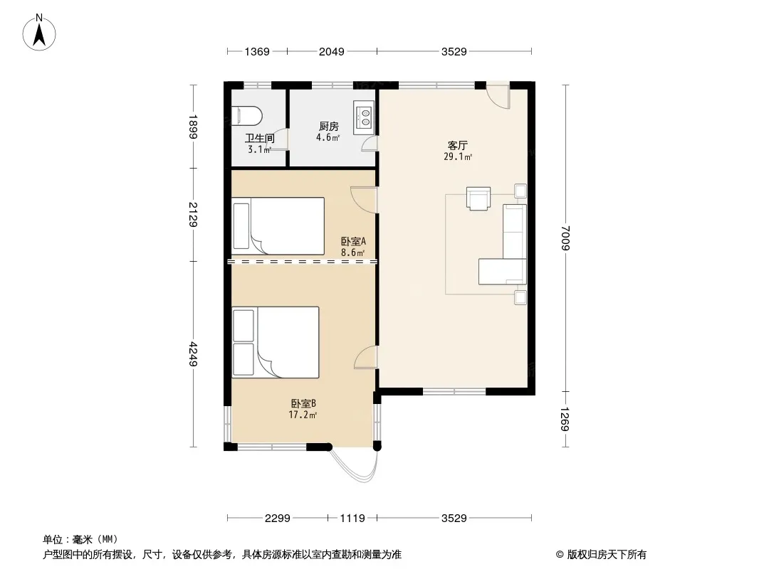 户型齐全,主打明厨,客厅朝南二居