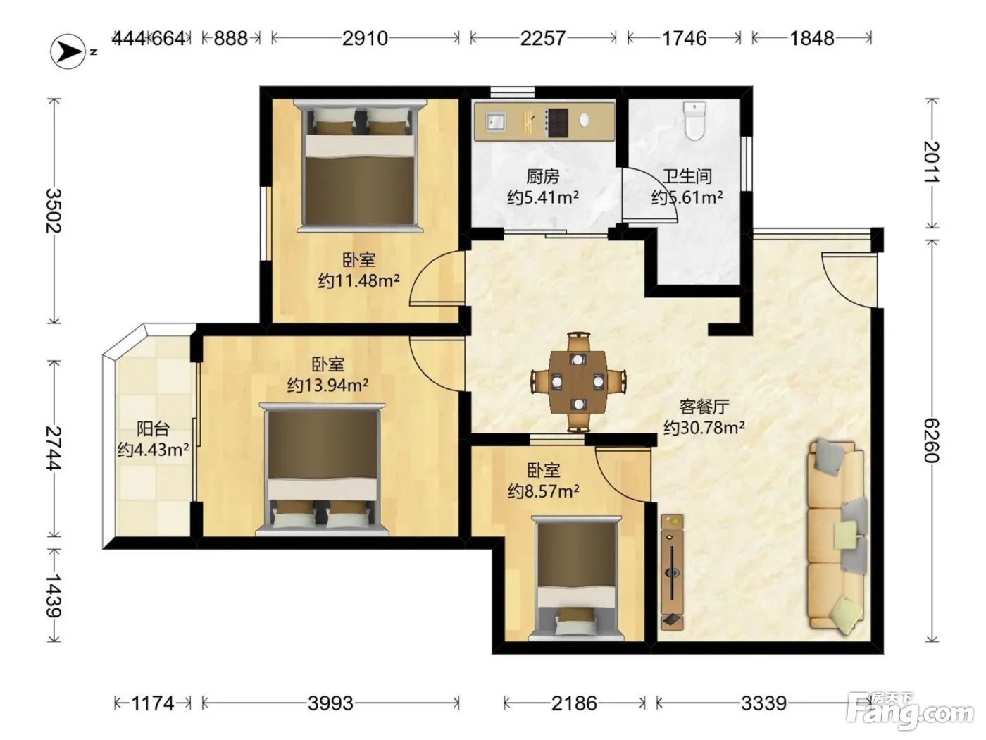 户型齐全,主打户型方正,明厨,客厅朝南二居