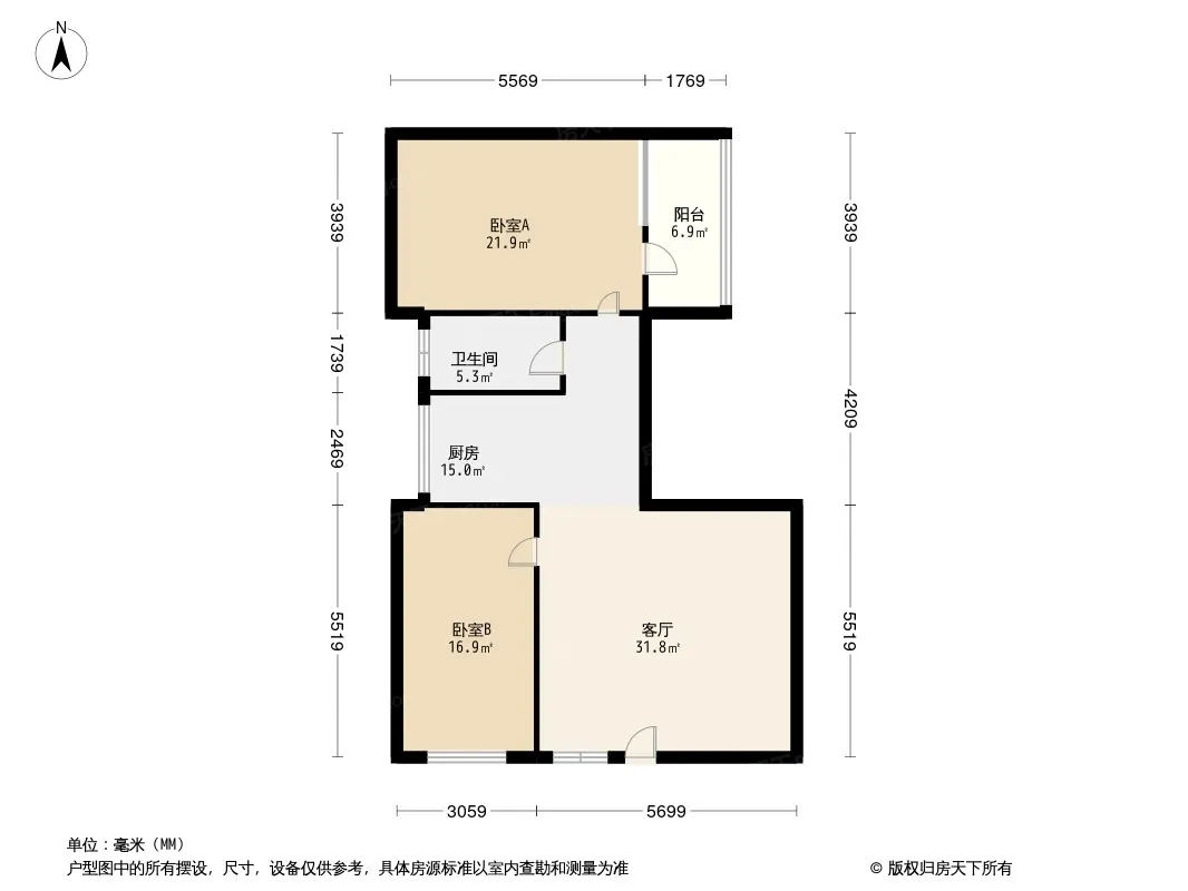 户型齐全,主打明厨,客厅朝南,双卧朝南,主卧朝南二居