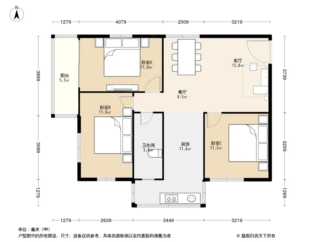 :中层3房 实用方正 配套成熟 刚需改善户型一步到位
