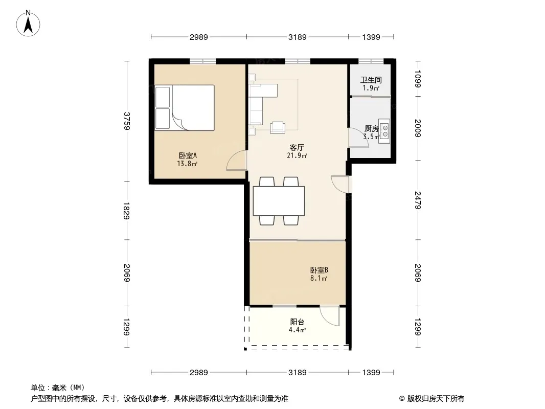 户型齐全,主打明厨,客厅朝南二居