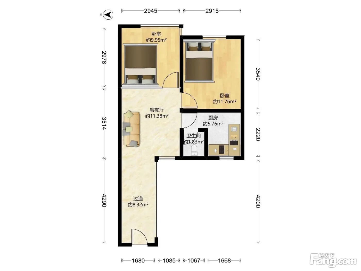 小北路2室1厅东南