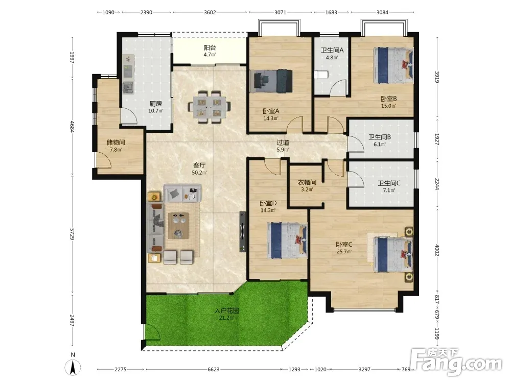 户型齐全,主打户型方正,明卫,客厅朝南,双阳台,独立衣帽间五居