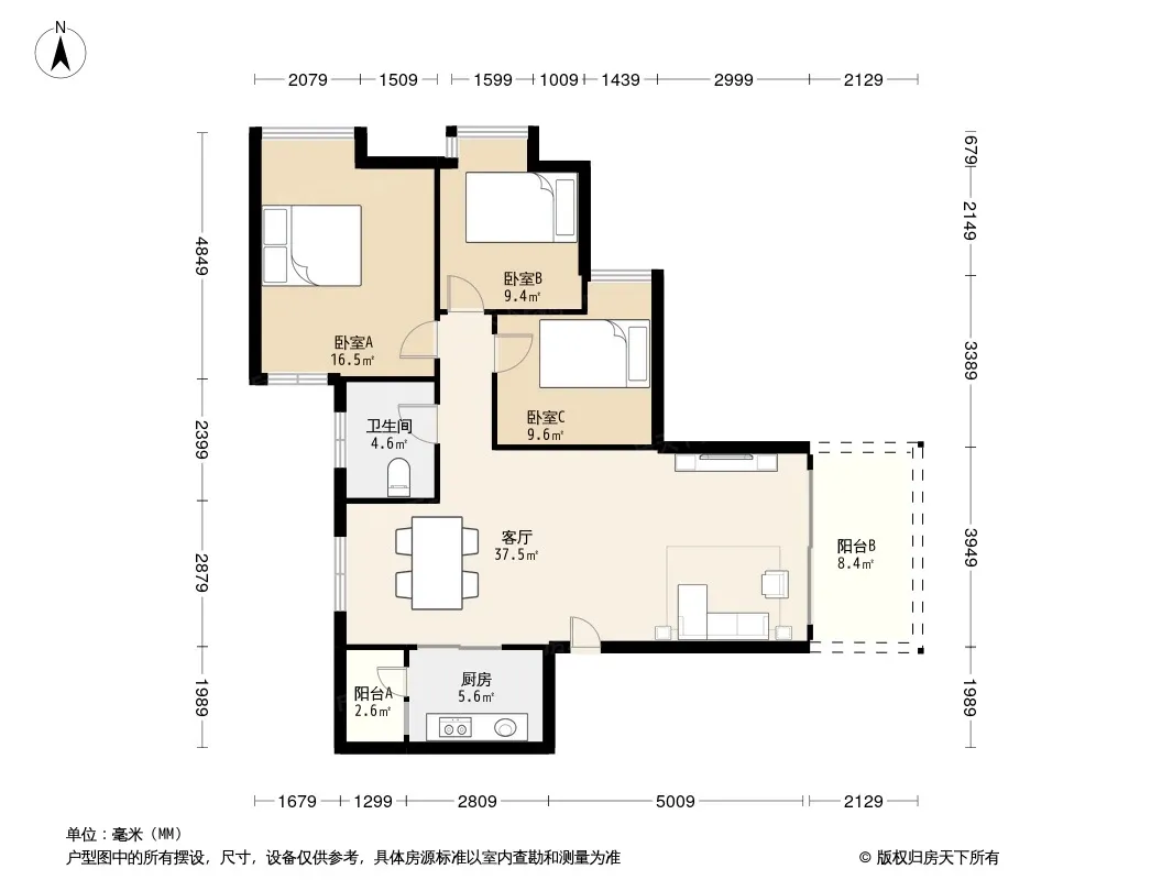 户型齐全,主打户型方正,明卫,客厅朝南,双阳台,主卧朝南三居