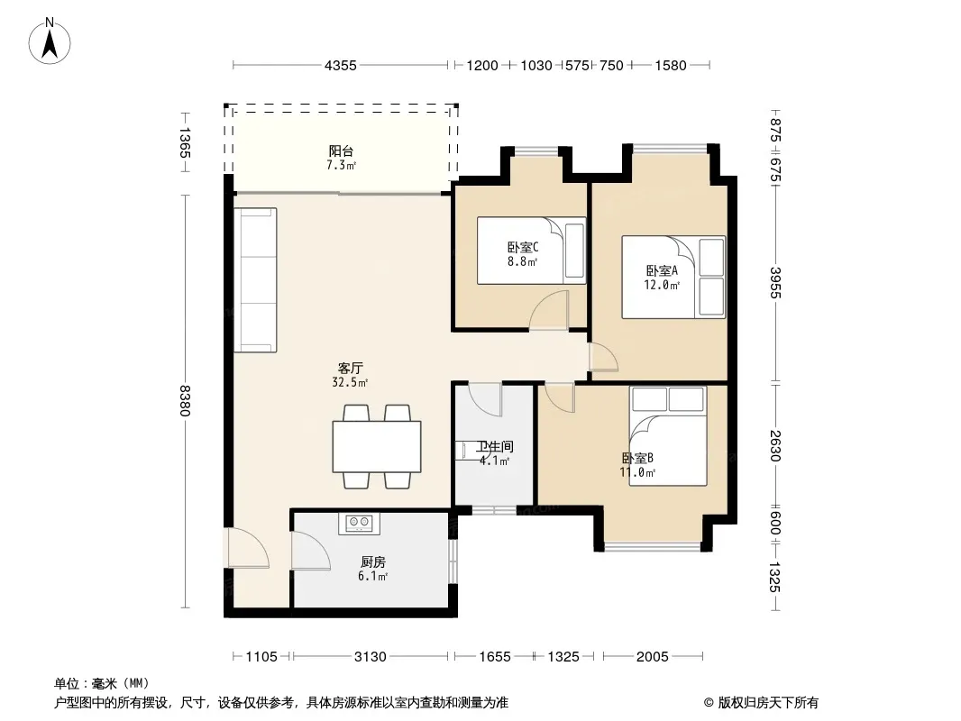 户型齐全,主打户型方正,明厨,明卫,主卧朝南三居