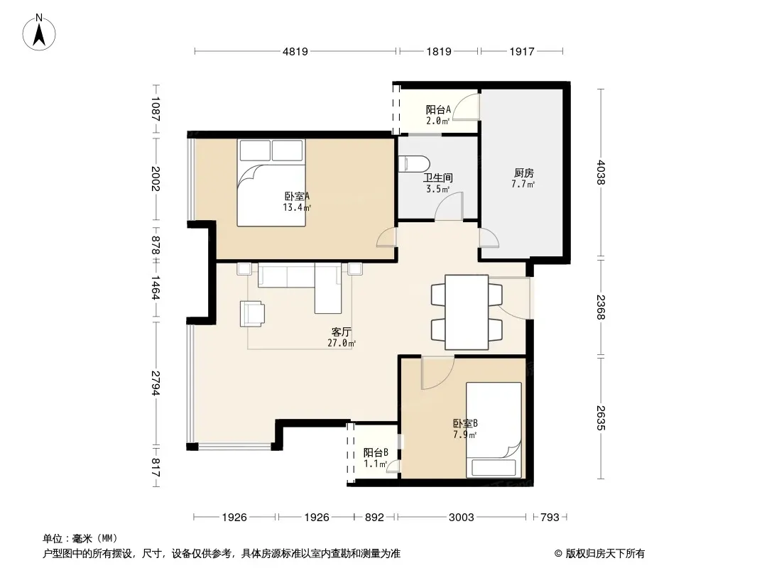 户型齐全,主打户型方正,客厅朝南,双阳台二居