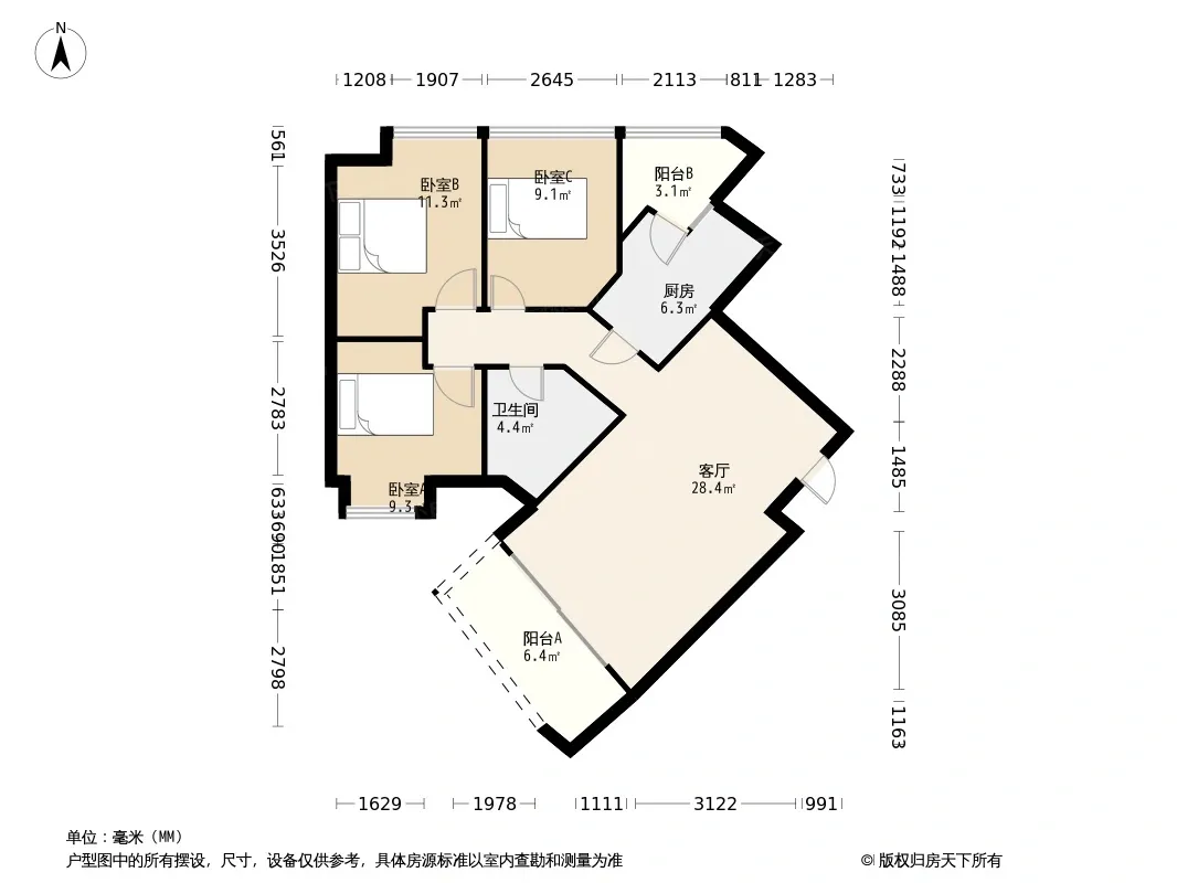 *获取完整户型报告,同时会有免费语音讲解服务