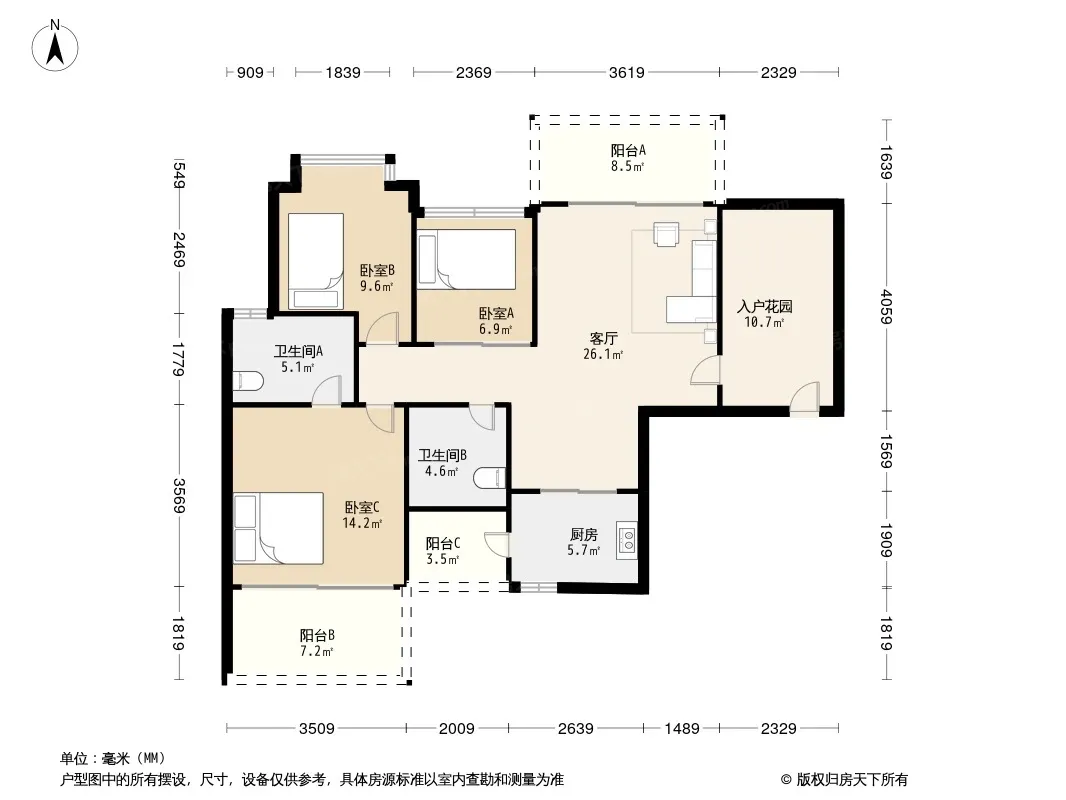 户型齐全,主打户型方正,明卫三居