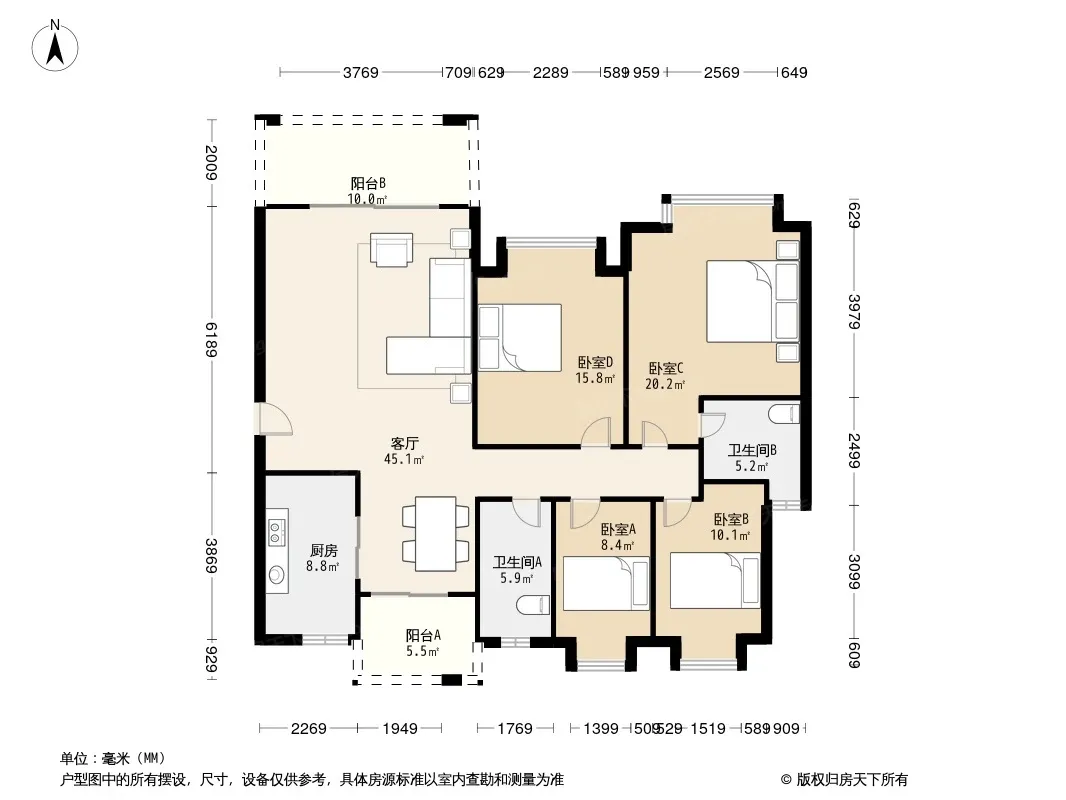 户型齐全,主打户型方正,明卫三居