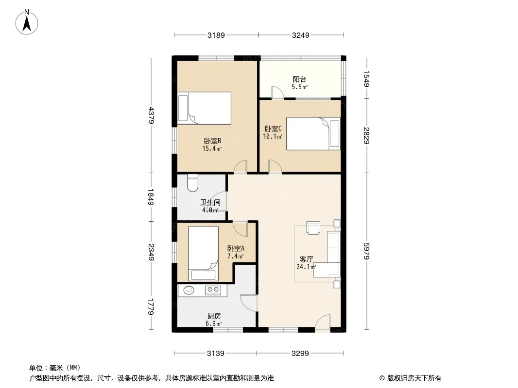 户型齐全,主打户型方正,明卫,明厨,客厅朝南三居