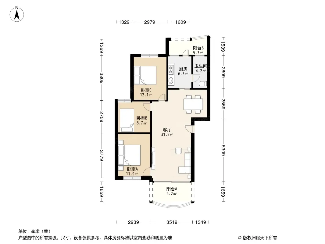 3室2厅1卫