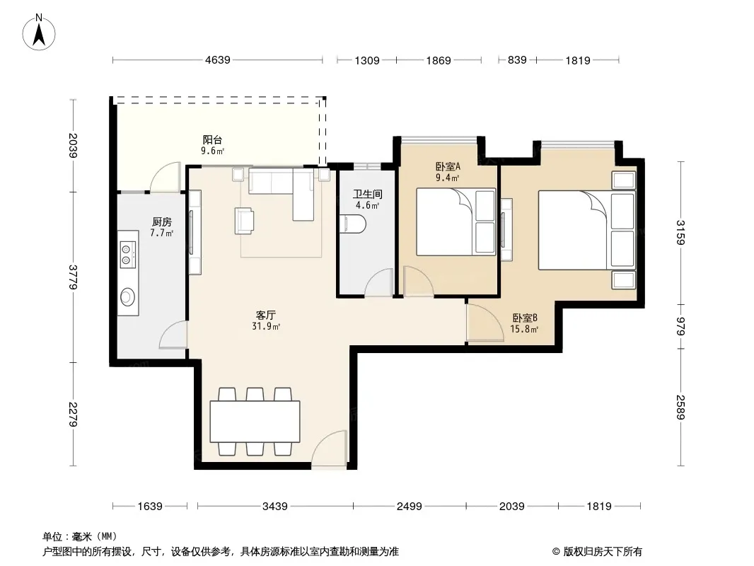 户型齐全,主打明卫,双阳台,双卧朝南二居
