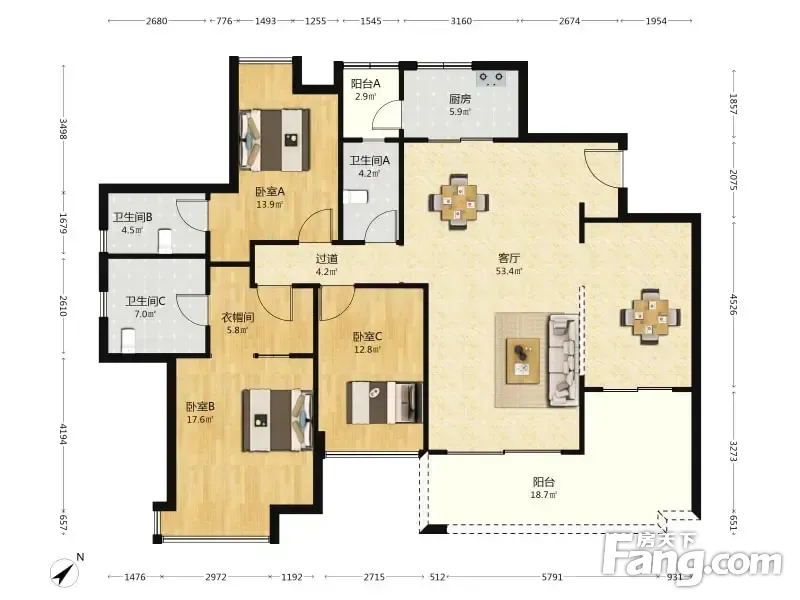 户型齐全,主打明厨,明卫,双阳台三居