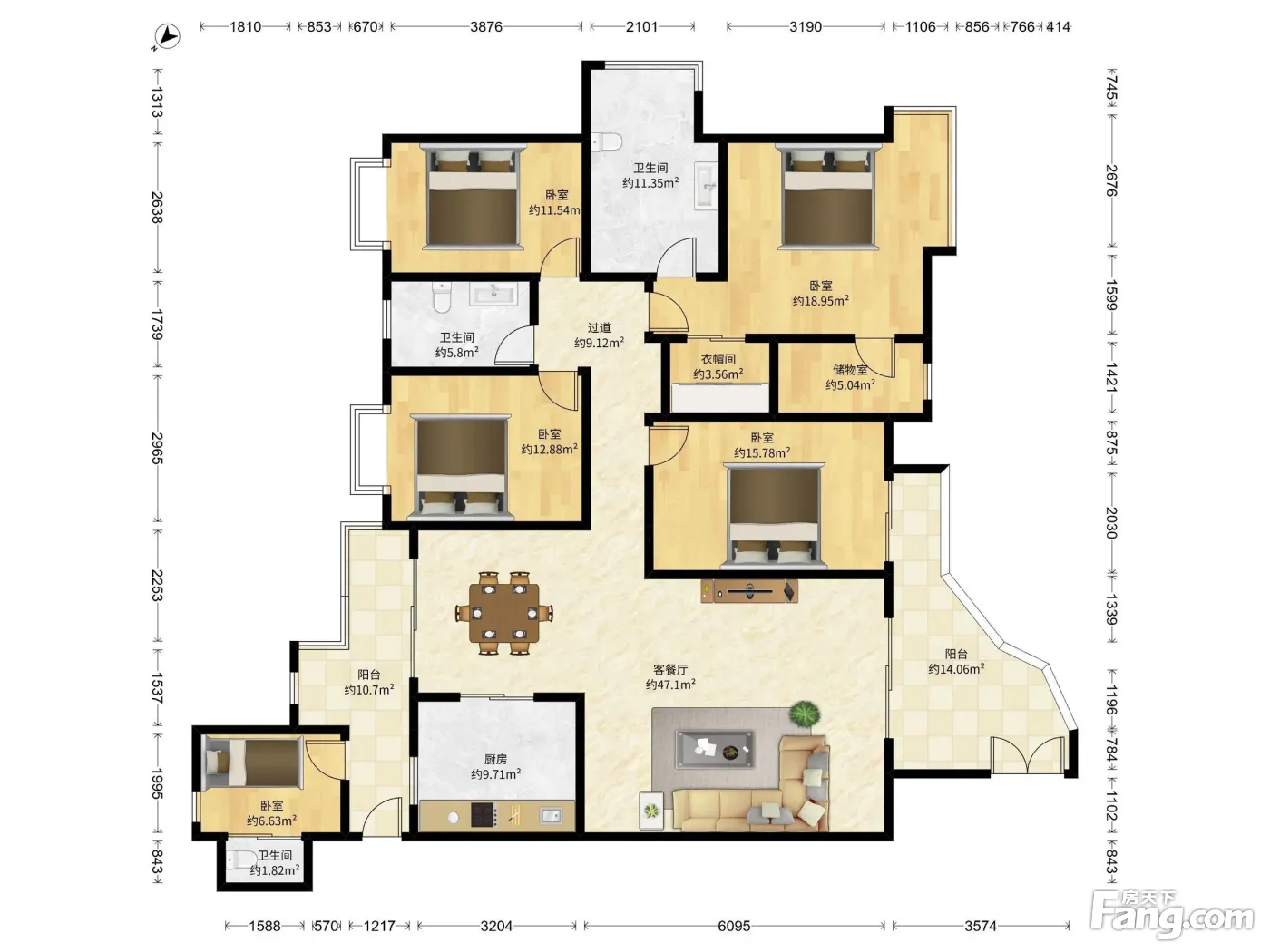户型齐全,主打户型方正,明卫,独立衣帽间,主卧朝南四居