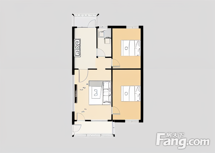 户型齐全,主打户型方正,明厨,客厅朝南,主卧朝南二居