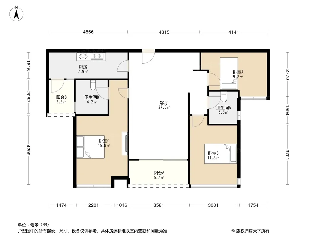 户型齐全,主打明卫,双阳台三居