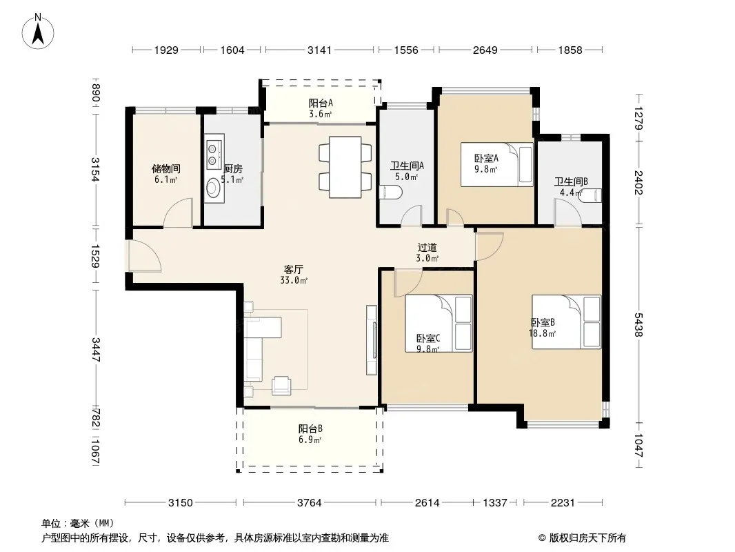 户型齐全,主打明卫,双阳台三居