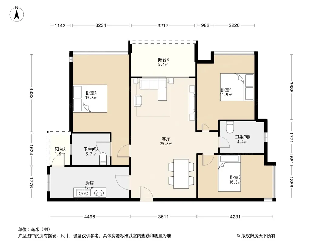 户型齐全,主打明卫,双阳台三居