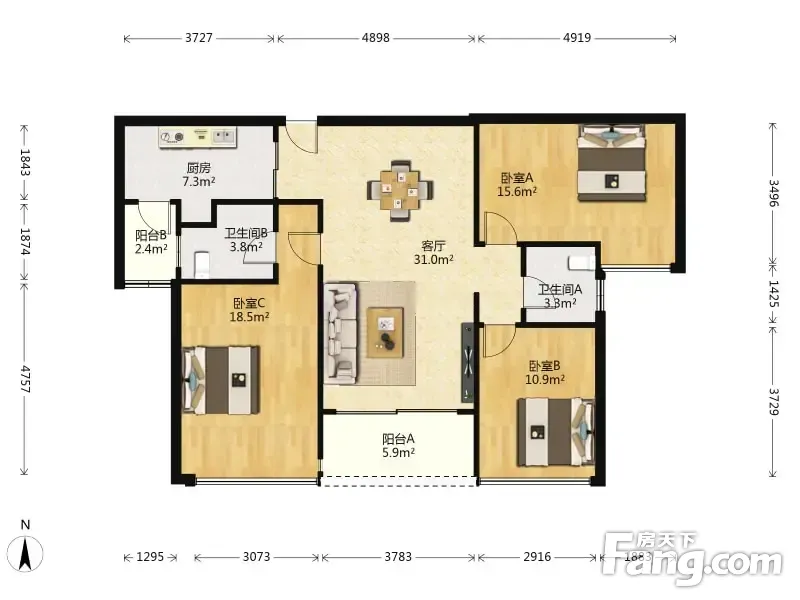 户型齐全,主打明卫,双阳台三居