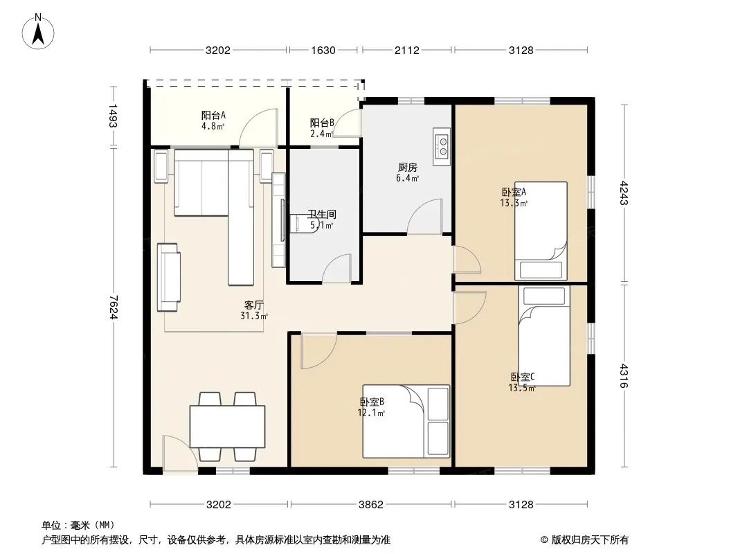 *获取完整户型报告,同时会有免费语音讲解服务