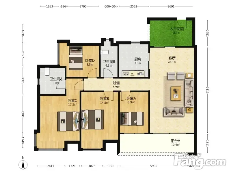 房屋拥有相对宽松的尺寸,布局通透,动静分离,设计豪华