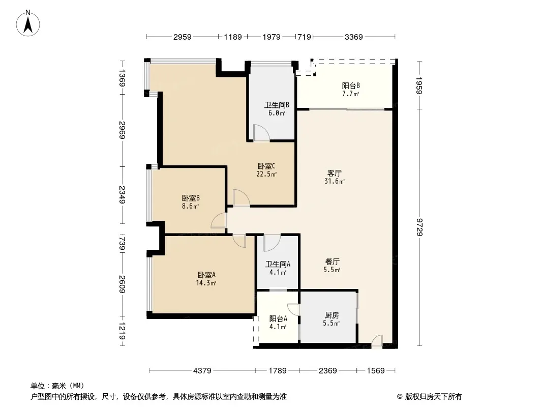 户型齐全,主打户型方正,双阳台,双卧朝南,主卧朝南三居