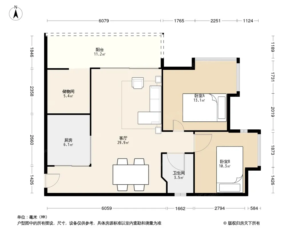 户型齐全,主打户型方正,双阳台二居