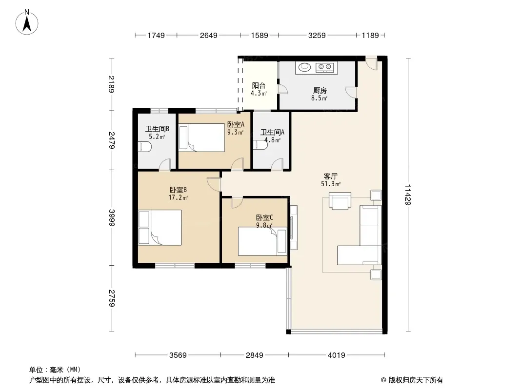 3室1厅2卫