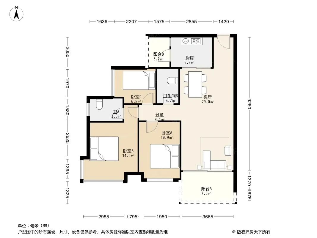 户型齐全,主打明卫,双阳台,双卧朝南三居