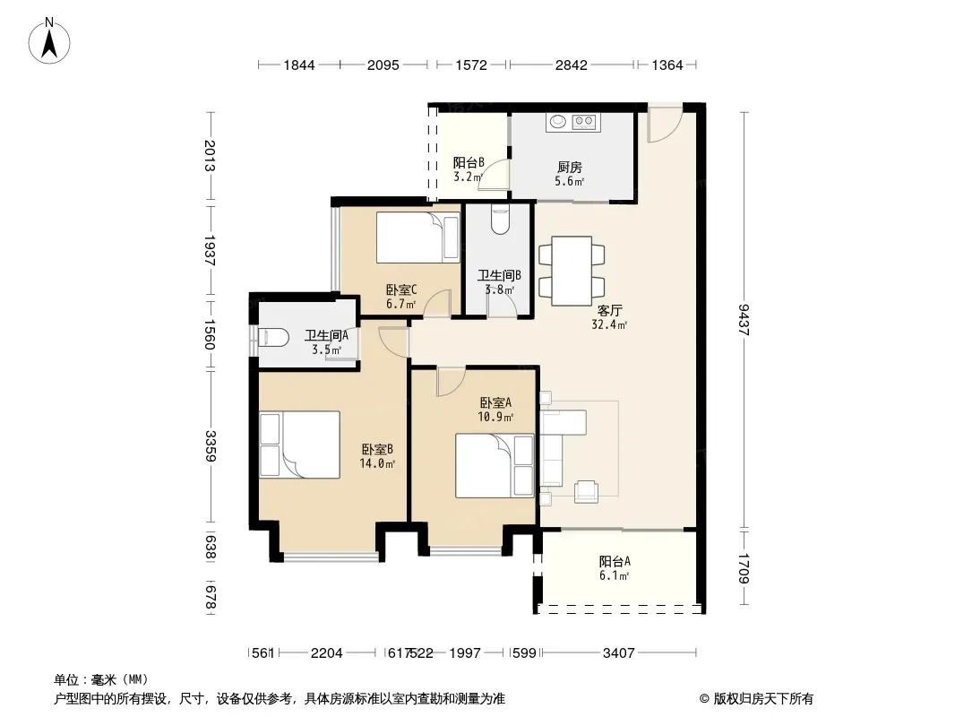 户型齐全,主打明卫,双阳台,双卧朝南三居