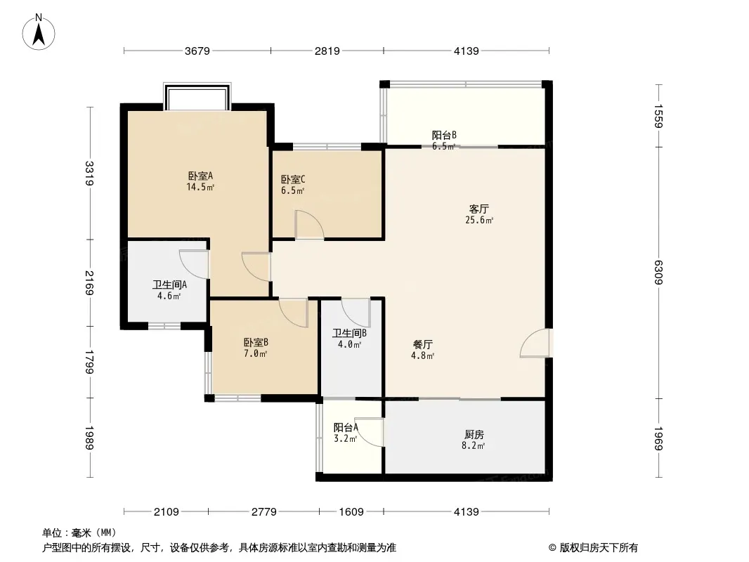 户型齐全,主打南北通透,户型方正,高附赠空间三居