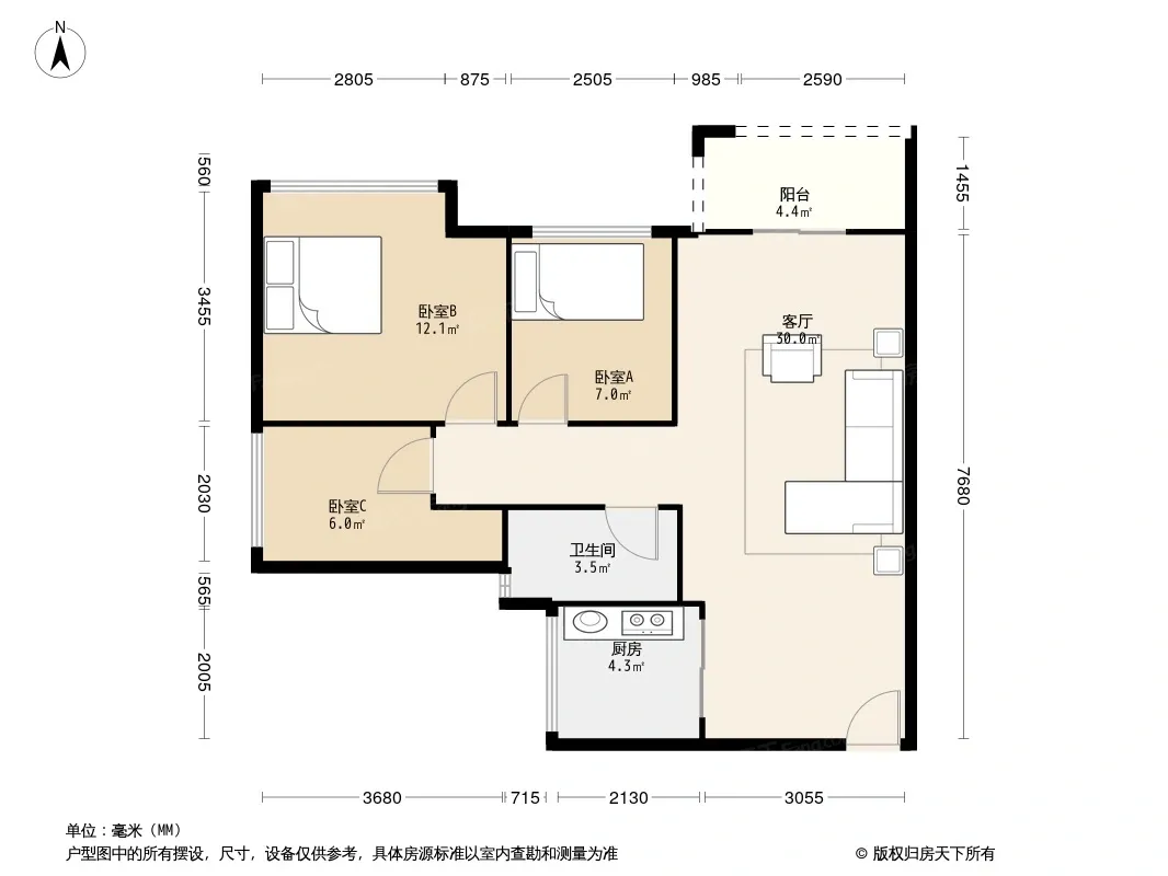 *获取完整户型报告,同时会有免费语音讲解服务
