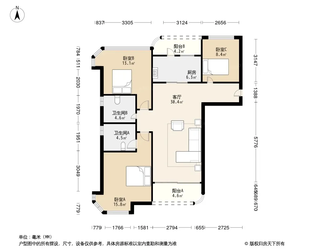 户型齐全,主打明卫,双阳台三居