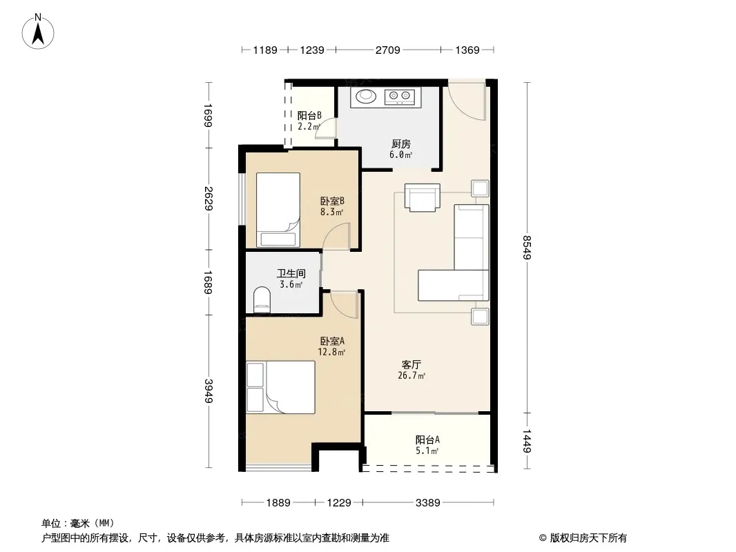 户型方正,厅出阳台,采光充足,高层看山景,近地铁。