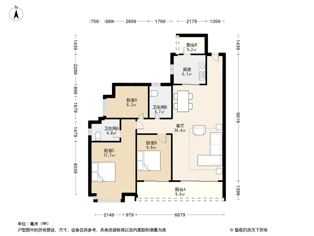 户型齐全,主打全明格局,户型方正,动静分离,明厨明卫三居