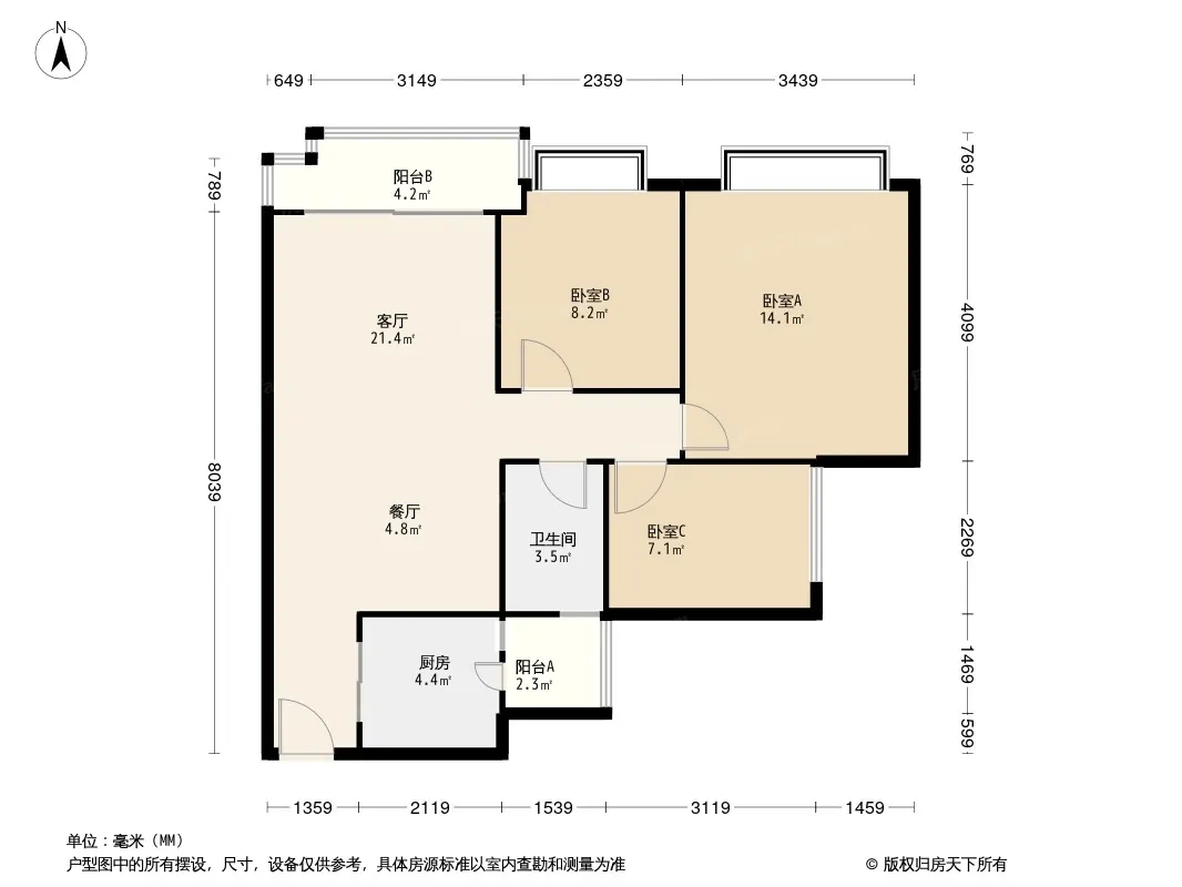户型齐全,主打全明格局,户型方正,动静分离,明厨明卫三居