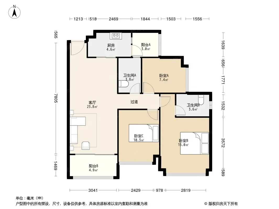 户型齐全,主打明卫,双阳台三居