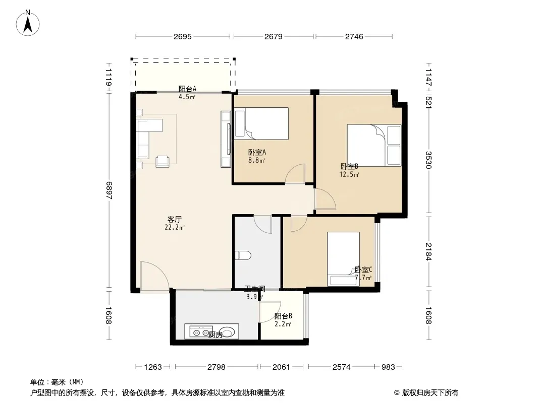 户型齐全,主打明卫,双阳台三居