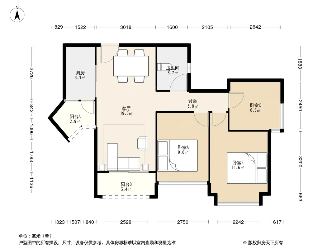 户型齐全,主打明卫,双阳台三居