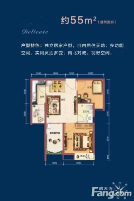 户型齐全,主打观景飘窗,全明格局,干湿分离二居