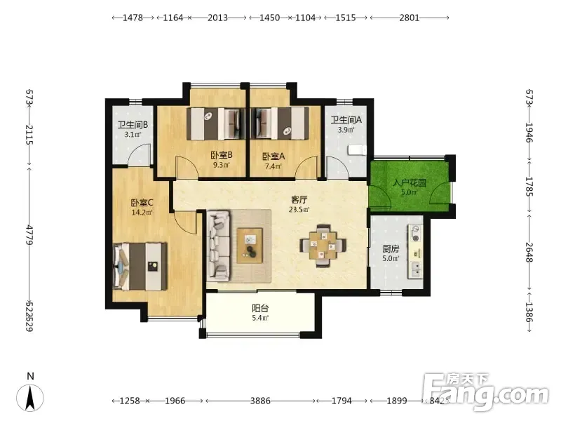 户型齐全,主打户型方正,明卫三居