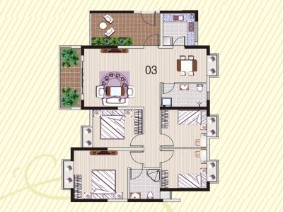 顺欣花园 4房 136 方