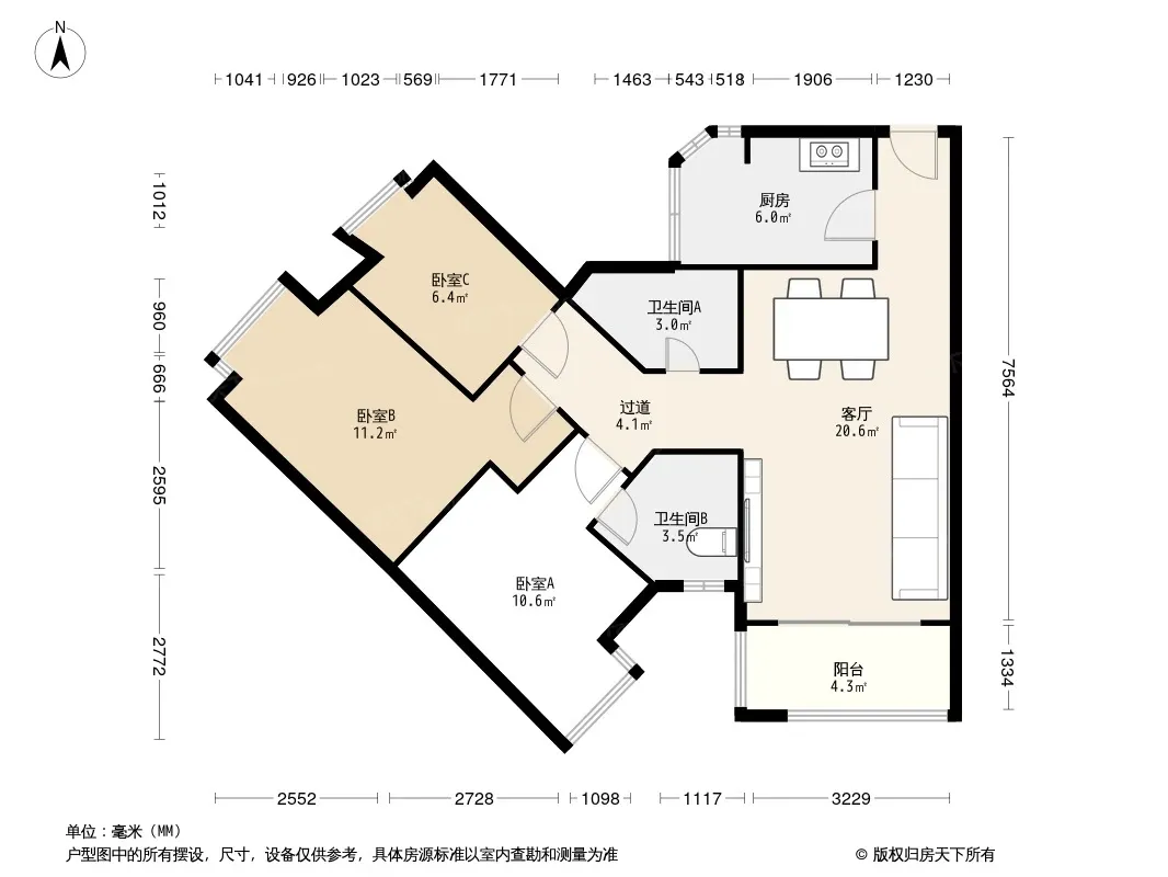 *获取完整户型报告,同时会有免费语音讲解服务