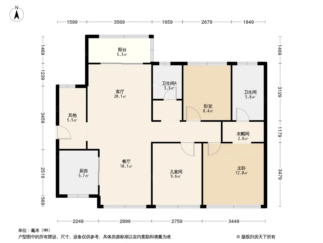 户型齐全,主打全明格局,动静分离,采光充足二居