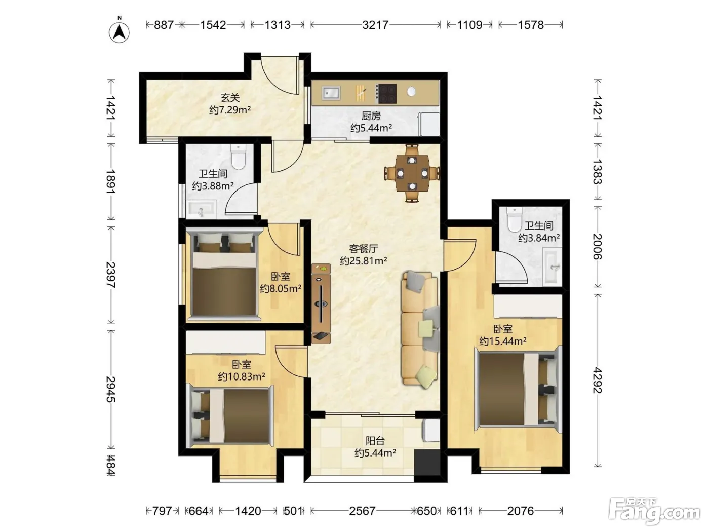 翠屏富通雅苑 3室1厅 南