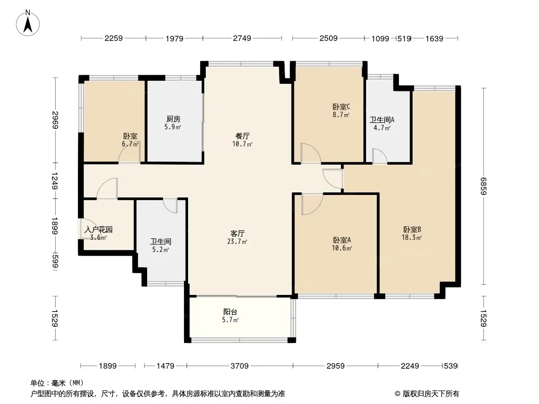 户型齐全,主打户型方正,客厅朝南,卧室朝南,大面宽阳台,入户花园四居