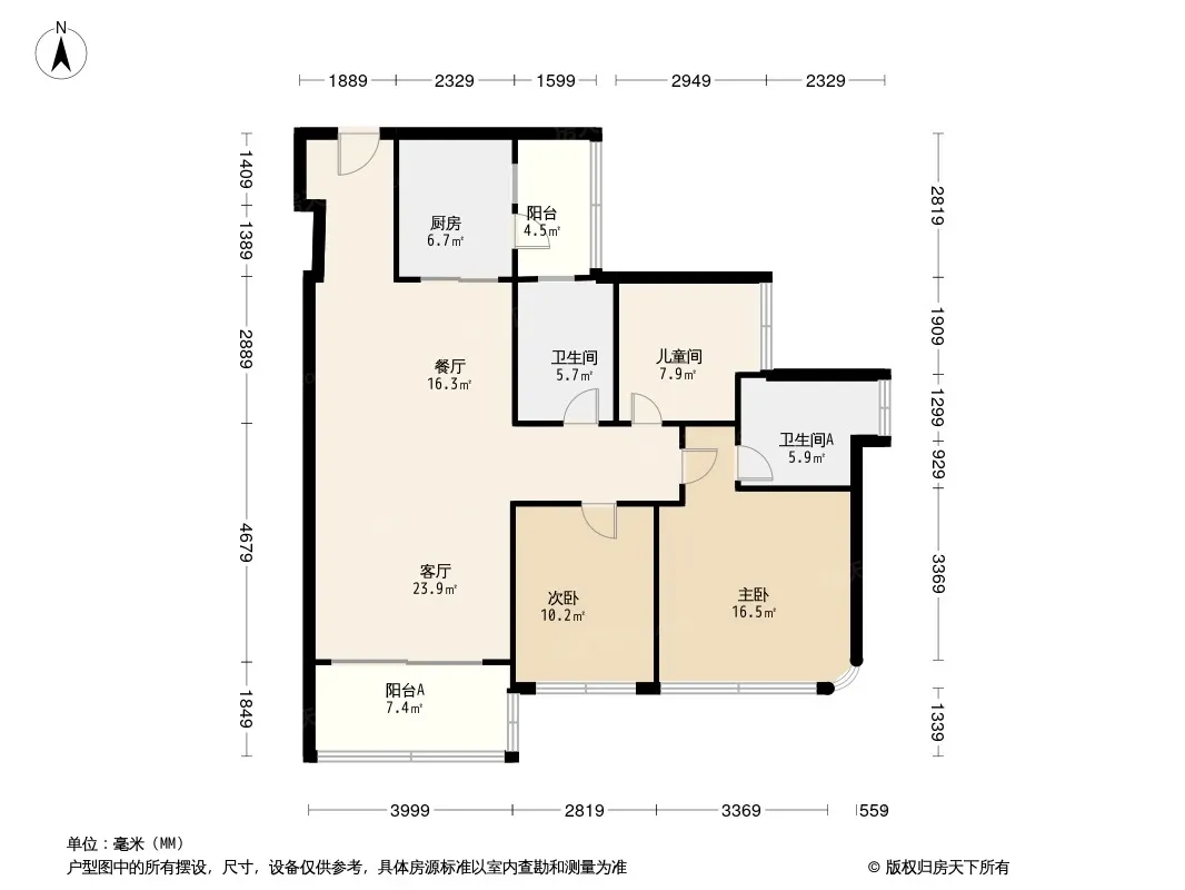 户型齐全,主打采光充足,主卧带卫,双阳台三居