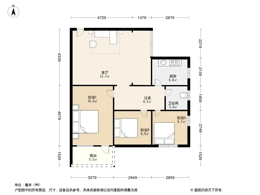 户型齐全,主打户型方正,明卫,明厨,双卧朝南,主卧朝南三居