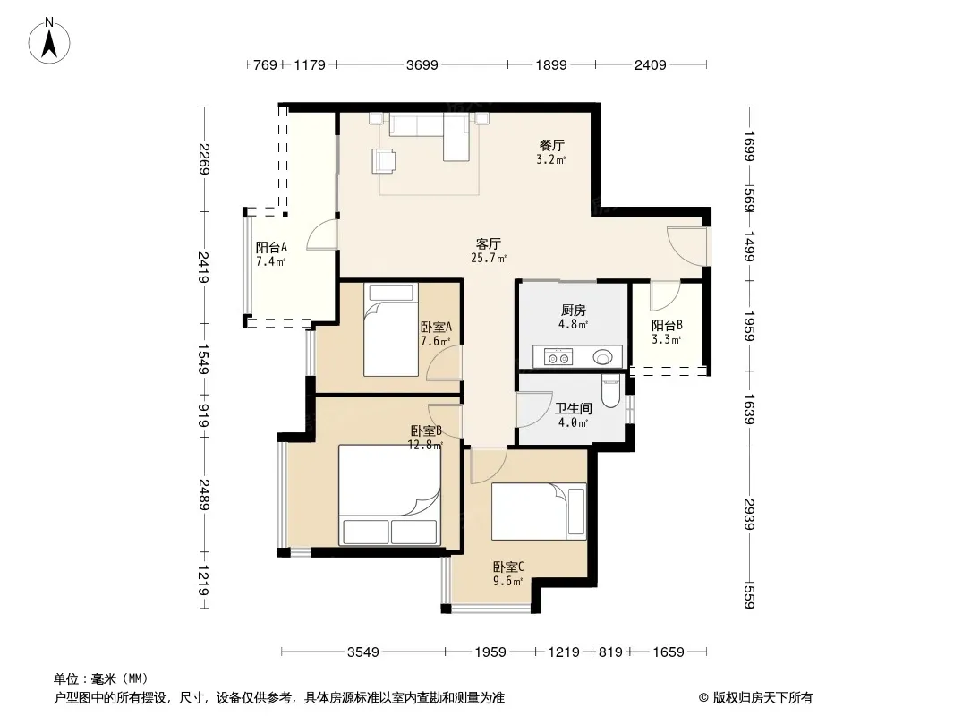 户型齐全,主打户型方正,双阳台,双卧朝南,主卧朝南三居