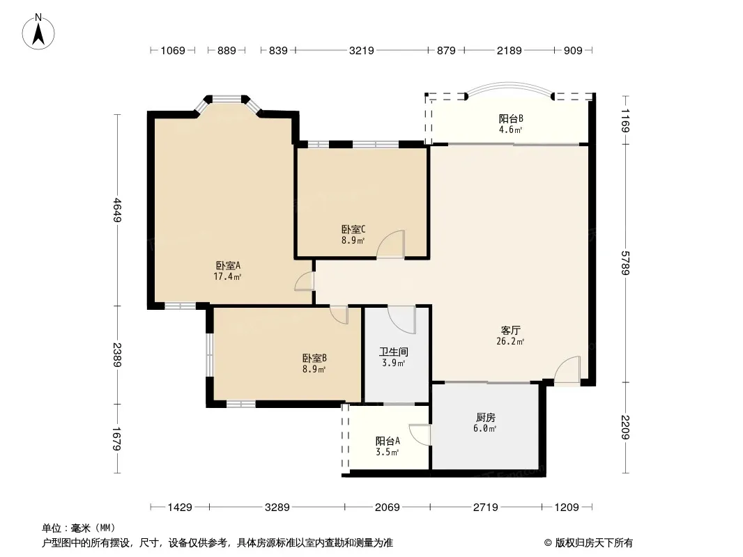 户型齐全,主打明卫,双阳台三居